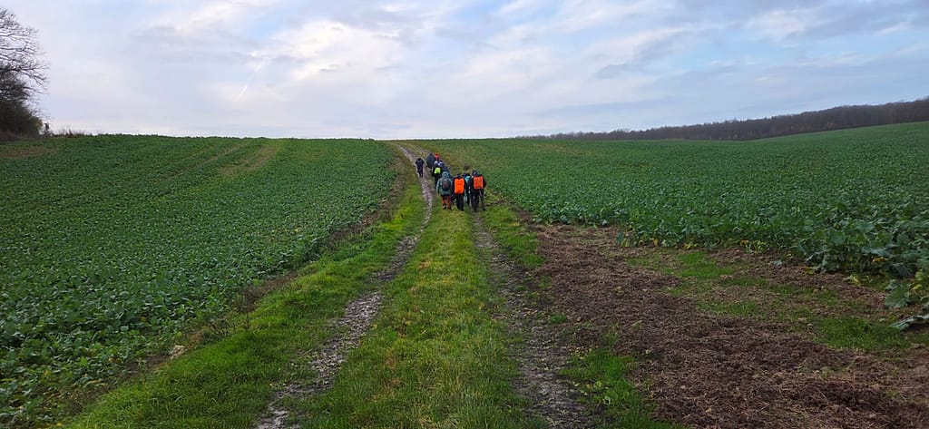Nous avons traversé le bourg, les hameaux, cultures, prés, vallées et forets sur 10 km pour finir en contrebas de l’église sous un ciel bleu. Un grand bol d’air !